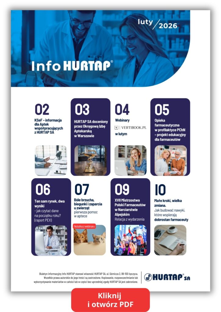 Lutowe wydanie Info HURTAP to praktyczny przegląd aktualności dla właścicieli i pracowników aptek, m.in.: